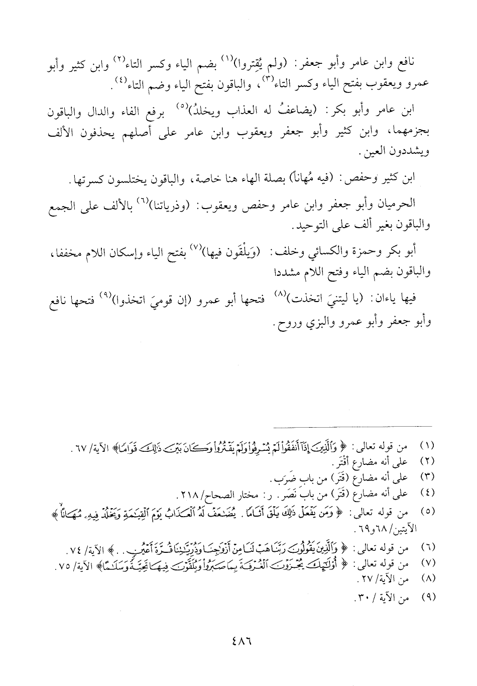 ابْن كثير وَأَبُو عَمْرو ورويس: (فذانك) بتَشْديد النُّون، وَالْبَاقُونَ بتخفيفها.