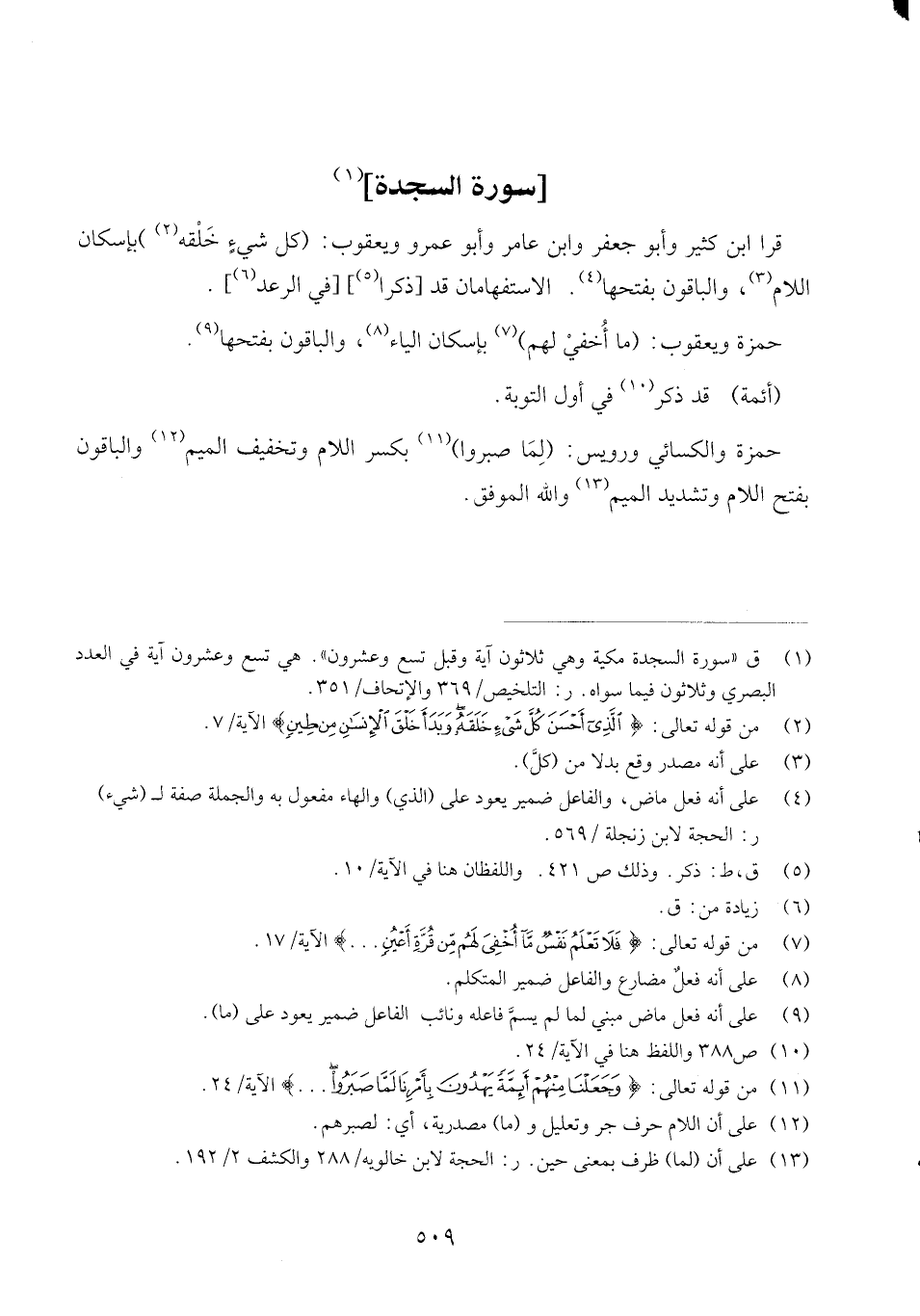 حَمْزَة: (ومكر السيء) بِإِسْكَان الْهمزَة فِي الْوَصْل لتوالي الحركات تَخْفِيفًا كَمَا سكن أَبُو عَمْرو الْهمزَة فِي بارئكم كَذَلِك، وَإِذا وقف أبدلها يَاء سَاكِنة، وَالْبَاقُونَ بخفضها فِي الْوَصْل، وَيجوز رومها وإسكانها فِي الْوَقْف أَي للباقين.