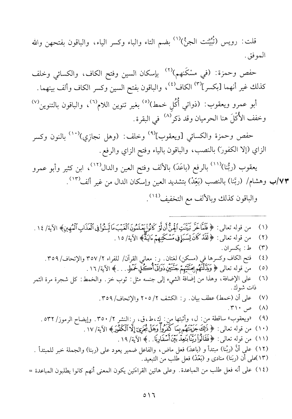 حَمْزَة وَالْكسَائِيّ وَخلف: (بل عجبت) بِضَم التَّاء، وَالْبَاقُونَ بِفَتْحِهَا. قالون وَابْن عَامر وَأَبُو جَعْفَر: (أَو آبَاؤُنَا) هُنَا وَفِي الْوَاقِعَة بِإِسْكَان الْوَاو وَالْبَاقُونَ بِفَتْحِهَا. (المخلصين) ذكر فِي يُوسُف وَجَمِيع مَا فِيهَا أَي من لفظ المخلصين. و (قل نعم) قد ذكر فِي الْأَعْرَاف.