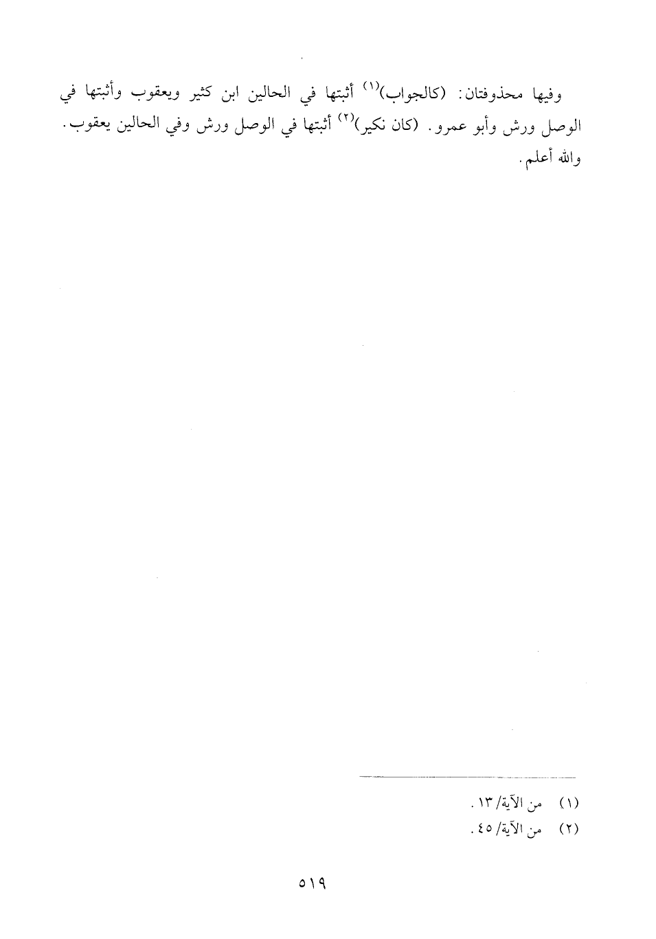 أَبُو جَعْفَر بِنصب بِالتَّاءِ وَتَخْفِيف الدَّال وَالْبَاقُونَ بِالْيَاءِ وَالتَّشْدِيد. بِضَم النُّون] وَإِسْكَان الصَّاد وَالله الْمُوفق.