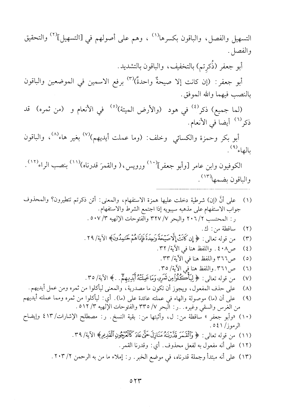 حمدون وَغَيره عَن اليزيدي مَفْتُوحَة فِي الْوَصْل محذوفة فِي الْوَقْف وَهُوَ عِنْدِي قِيَاس قَول أبي عَمْرو فِي اتِّبَاع المرسوم عِنْد الْوَقْف، وَيَعْقُوب يثبتها على أَصله فِي الْوَقْف. وَالْبَاقُونَ يحذفونها فِي الْحَالين (لَكِن الَّذين) ذكر لأبي جَعْفَر فِي آخر آل عمرَان.