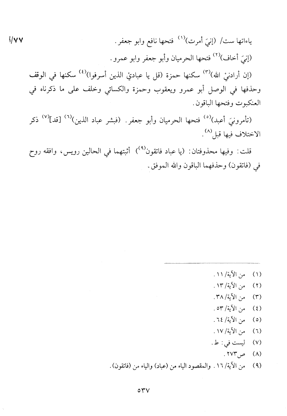 وَالْبَاقُونَ بِغَيْر ألف على التَّوْحِيد. (نذهبن بك أَو نرينك) [ذكرا فِي آل عمرَان] . (وَيَا أيه السَّاحر) قد ذكر فِي النُّور.
