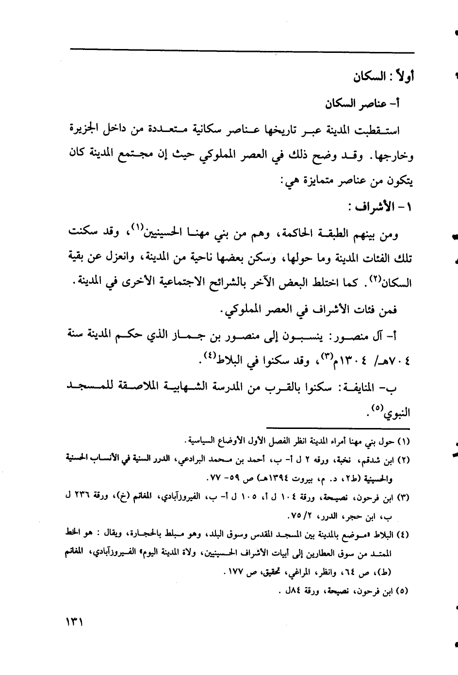 (4) البلاط "موضع بالمدينة بين المسجد المقدس وسوق البلد، وهو مبلط بالحجارة، ويقال: هو الخط الممتد من سوق العطارين إلى أبيات الأشراف الحسينيين، ولاة المدينة اليوم "الفيروزآبادي، المغانم (ط)، ص 64، وانظر، المراغي، تحقيق، ص 177.