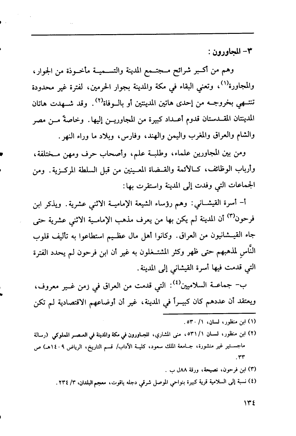 (2) ابن منظور، لسان 1/ 531، منى المشاري، المجاورون في مكة والمدينة في العصر المملوكي (رسالة ماجستير غير منشورة، جامعة الملك سعود، كلية الآداب / قسم التاريخ، الرياض 1409هـ) ص 33.