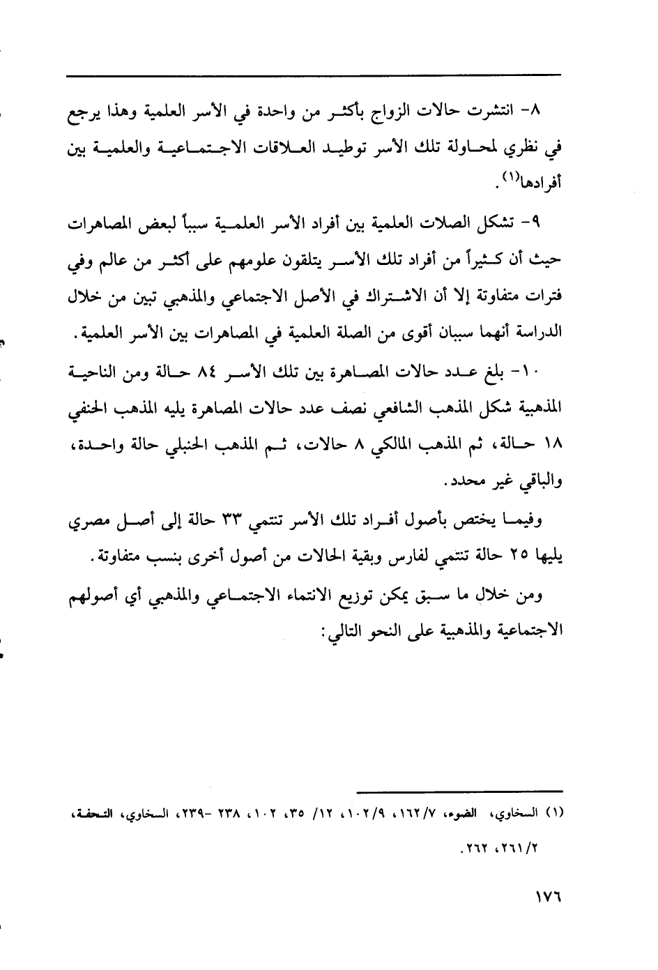 8 - انتشرت حالات الزواج بأكثر من واحدة في الأسر العلمية وهذا يرجع في نظري لمحاولة تلك الأسر توطيد العلاقات الاجتماعية والعلمية بين أفرادها (1).