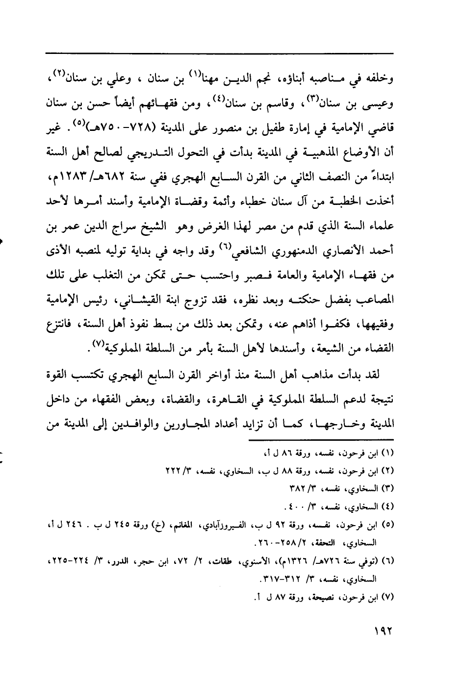 (6) (توفي سنة 726هـ/ 1328م) الأسنوي، طقات، 2/ 72، ابن حجر، الدرر، 3/ 224 - 225، السخاوي، نفسه، 3/ 312 - 317.
