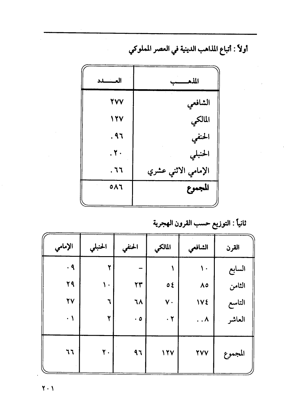 القرن/ الشافعي/ المالكي/ الحنفي/ الحنبلي/ الإمامي