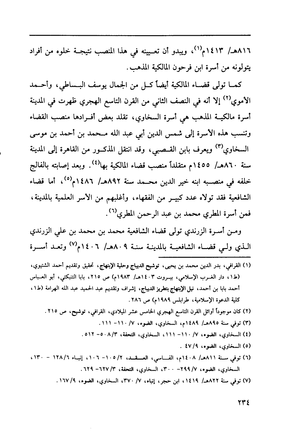 (6) توفي سنة 811هـ/ 1408م، الفاسي، العقد، 2/ 105 - 106، إنباء 6/ 128 - 130، السخاوي، الضوء، 7/ 299 - 300، السخاوي، التحفة، 3/ 627 - 629.