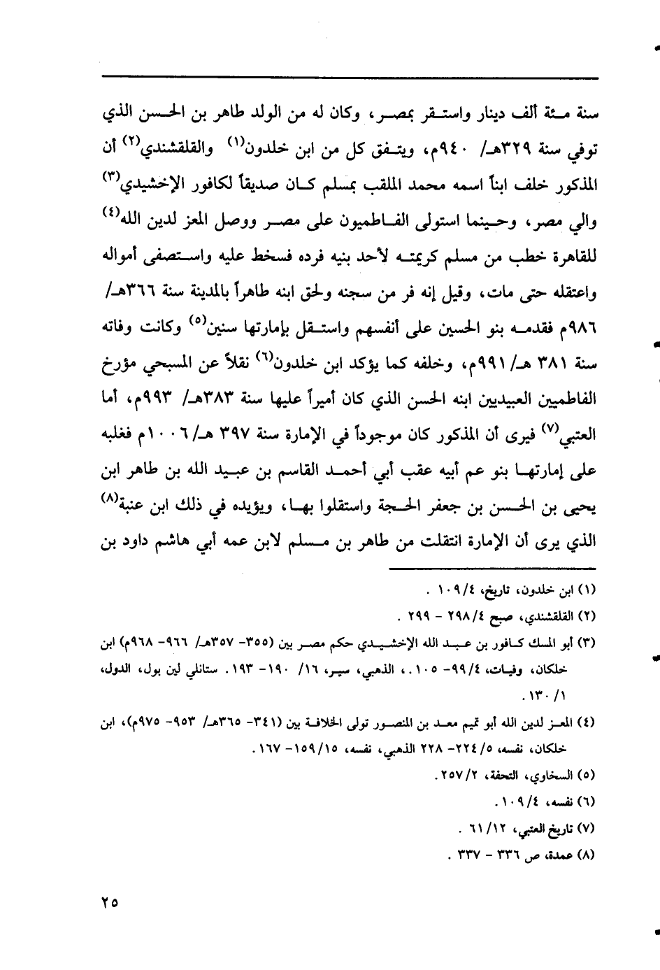 (3) أبو المسك كافور الإخشيدي حكم مصر بين (355 - 357هـ/966 - 968م) ابن خلكان، وفيات، 4/ 99 - 0105، الذهبي، سير، 16/ 190 - 193.ستانلي لين بول، الدول، 130/ 1.