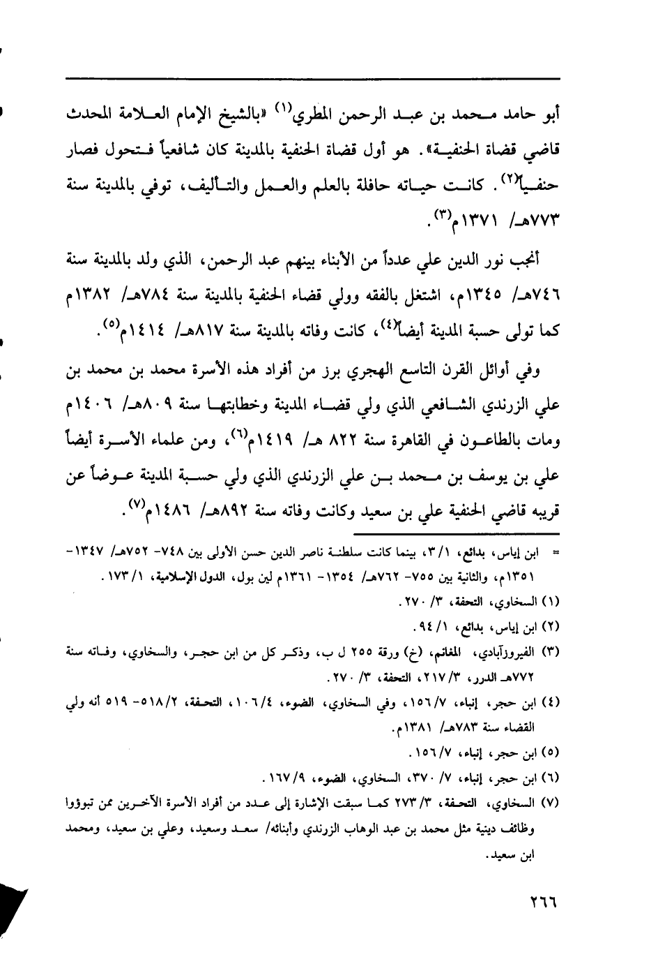 (7) السخاوي، التحفة، 273كما سبقت الإشارة إلى عدد من أفراد الأسرة الآخرين ممن تبؤوا وظائف دينية مثل محمد بن عبد الوهاب الزرندي وأبنائه / سعد وسعيد، وعلي بن سعيد، ومحمد ابن سعيد.