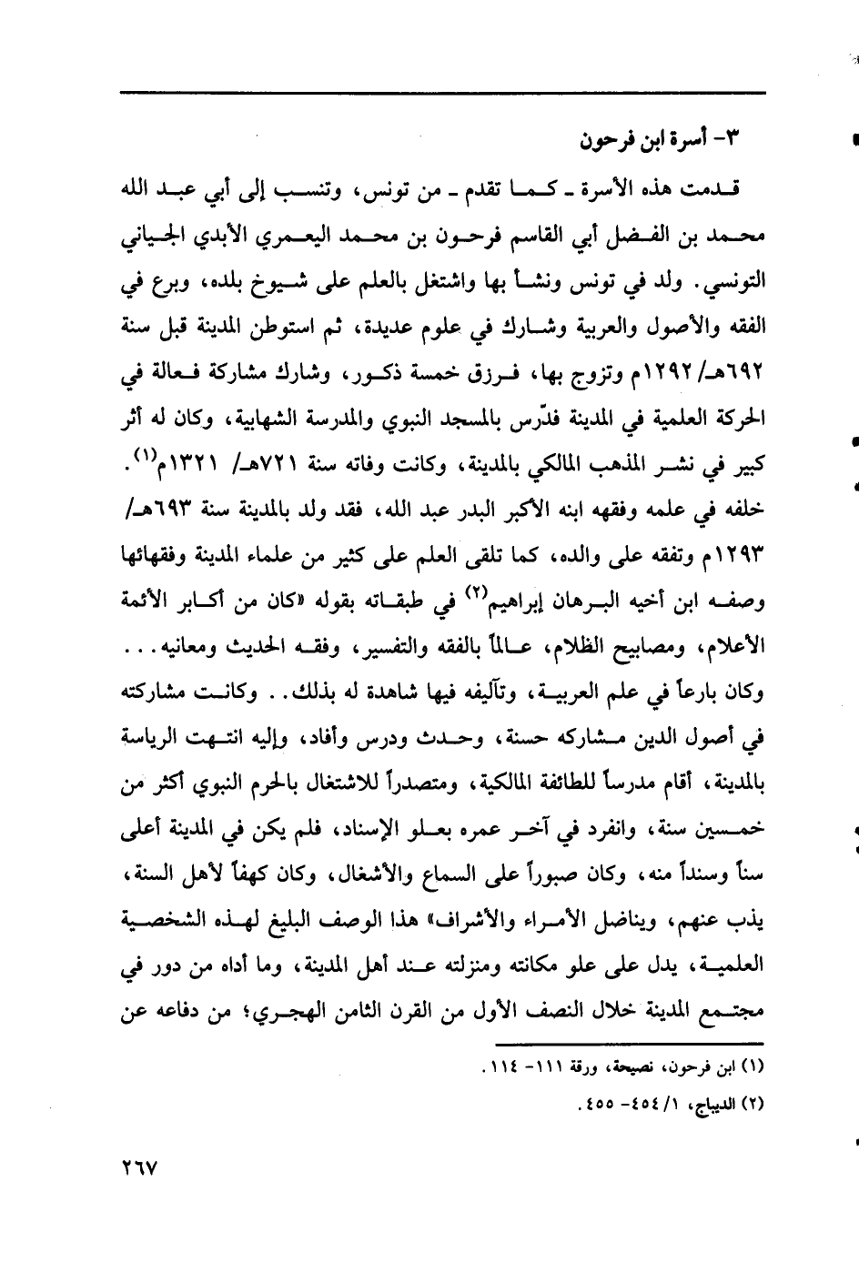 (1) ابن فرحون، نصيحة، ورقة 111 - 114.