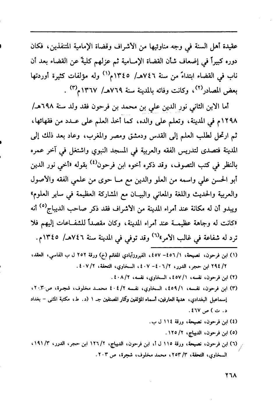 (6) ابن فرحون، نصيحة، ورقة 115ل أ، ابن فرحون، الديباج،126/ 2ابن حجر، الدرر، 191/ 3السخاوي، التحفة،253/ 3،محمد مخلوف، شجرة، ص203.