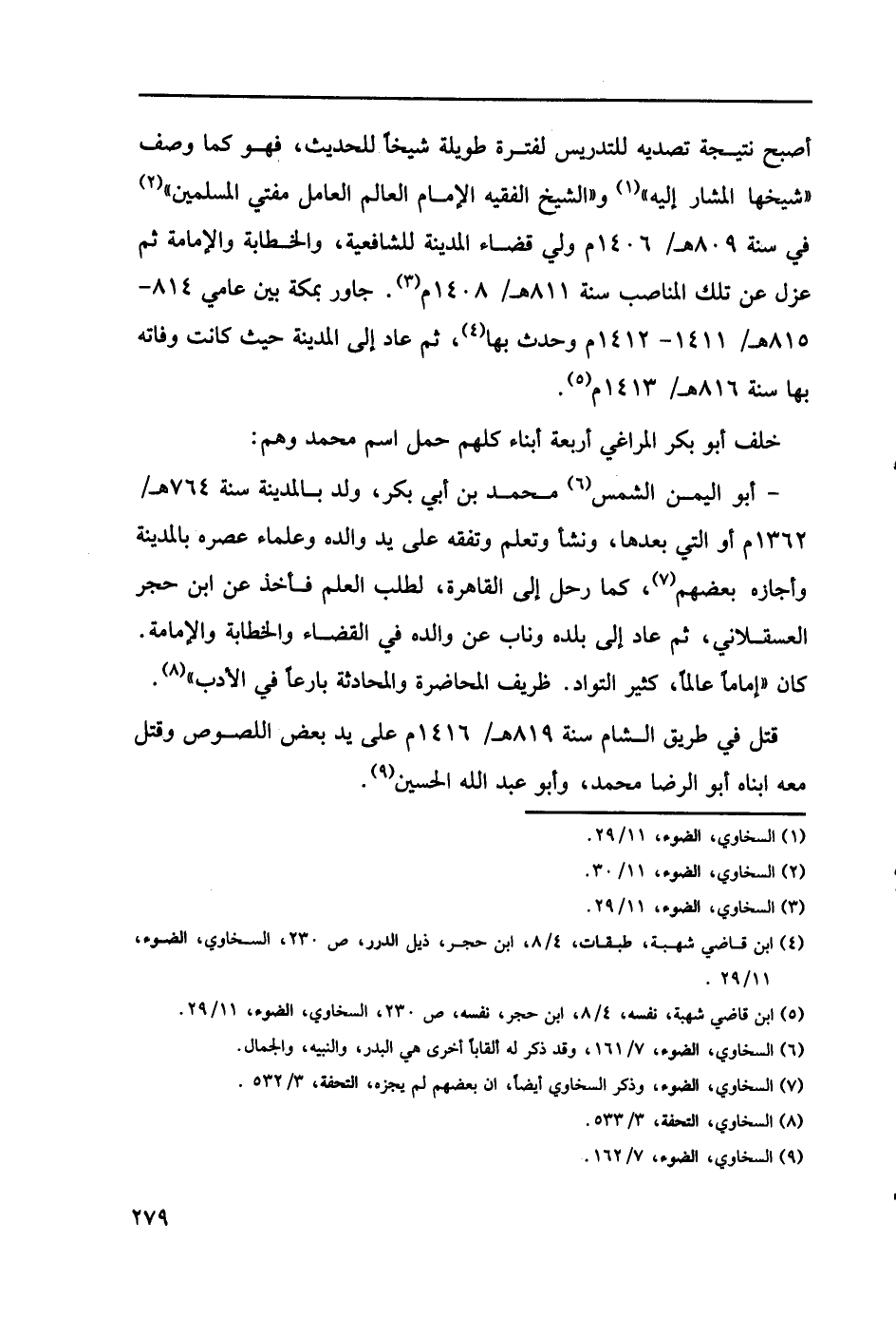 (5) ابن قاضي شهبة، نفسه، 8/ 4، ابن حجر، نفسه، ص230، السخاوي، الضوء، 29/ 11.