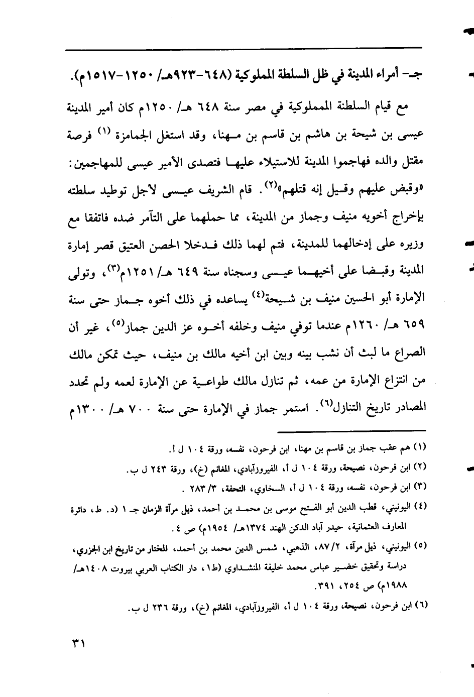 جـ-أمراء المدينة في ظل السلطة المملوكية (648 - 923هـ/1250 - 1517م).