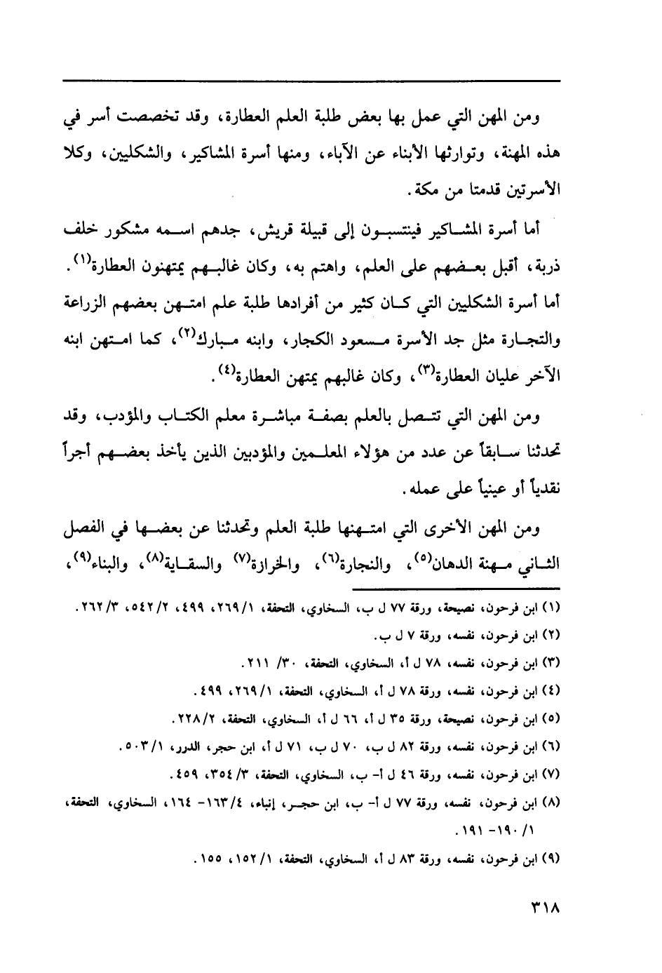ومن المهن الأخرى التي امتهنها طلبة العلم وتحدثنا عن بعضها في الفصل الثاني مهنة الدهان (5)، والنجارة (6)، والخرازة (7) والسقاية (8)، والبناء (9)،