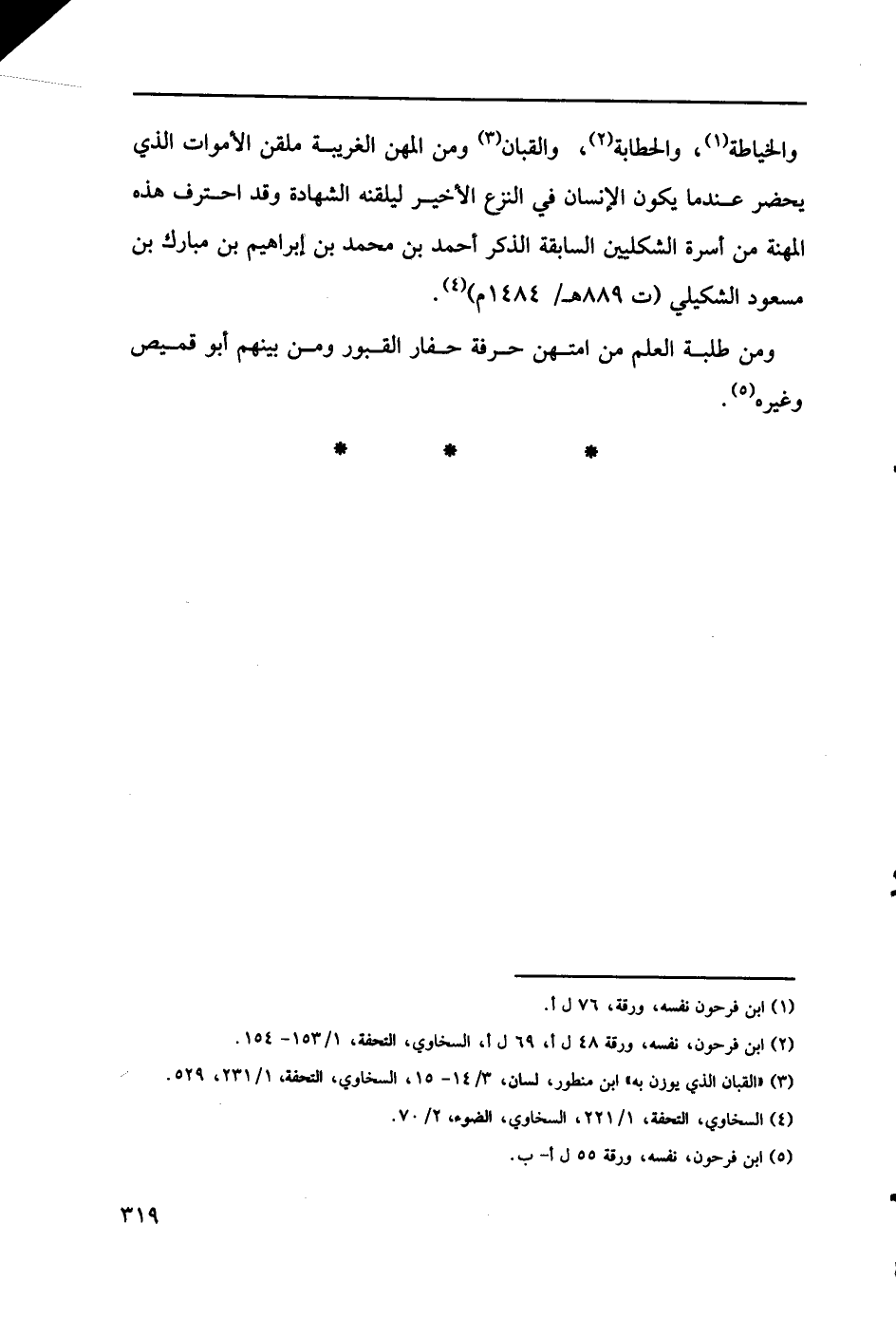 ومن طلبة العلم من امتهن حرفة حفار القبور ومن بينهم أبو قميص وغيره (5).