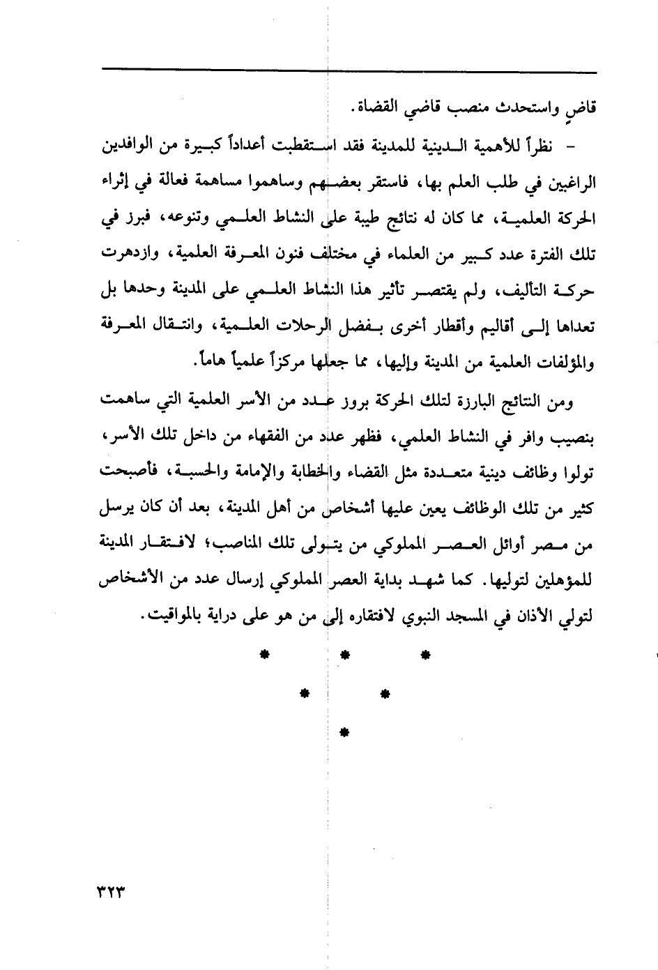 ومن النتائج البارزة لتلك الحركة بورز عدد من الأسر العلمية التي ساهمت بنصيب وافر في النشاطا العلمي، فظهر عدد من الفقهاء من داخل تلك الأسر، تولوا وظائف دينية متعددة مثل القضاء والخطابة والإمامة وحسبة، فأصبحت كثير من تلك الوظائف يعين عليها أشخاص من أهل المدينة، بعد أن كان يرسل من مصر أوائل العصر المملوكي من يتولى تلك المناصب؛ لافتقار المدينة للمؤهلين لتوليها. كما شهد بداية العصر المملوكي إرسال عدد من الأشخاص لتولي الأذان في المسجد النبوي لافتقاره إلى من هو على دراية بالمواقيت.…