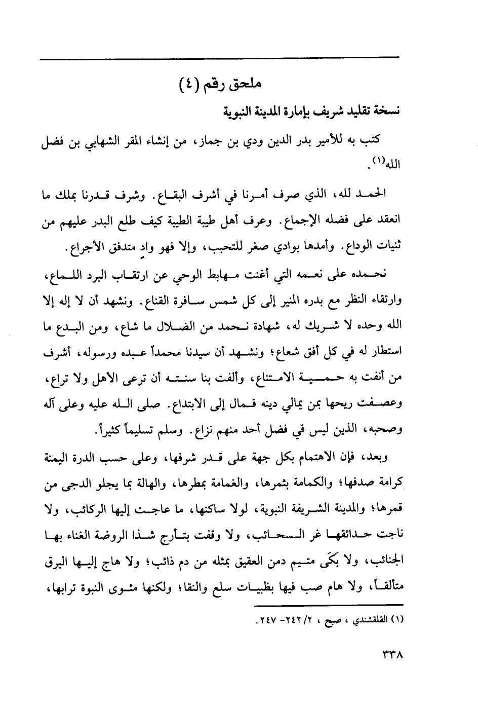 ملحق رقم (4) نسخة تقليد شريف بإمارة المدينة النبوية