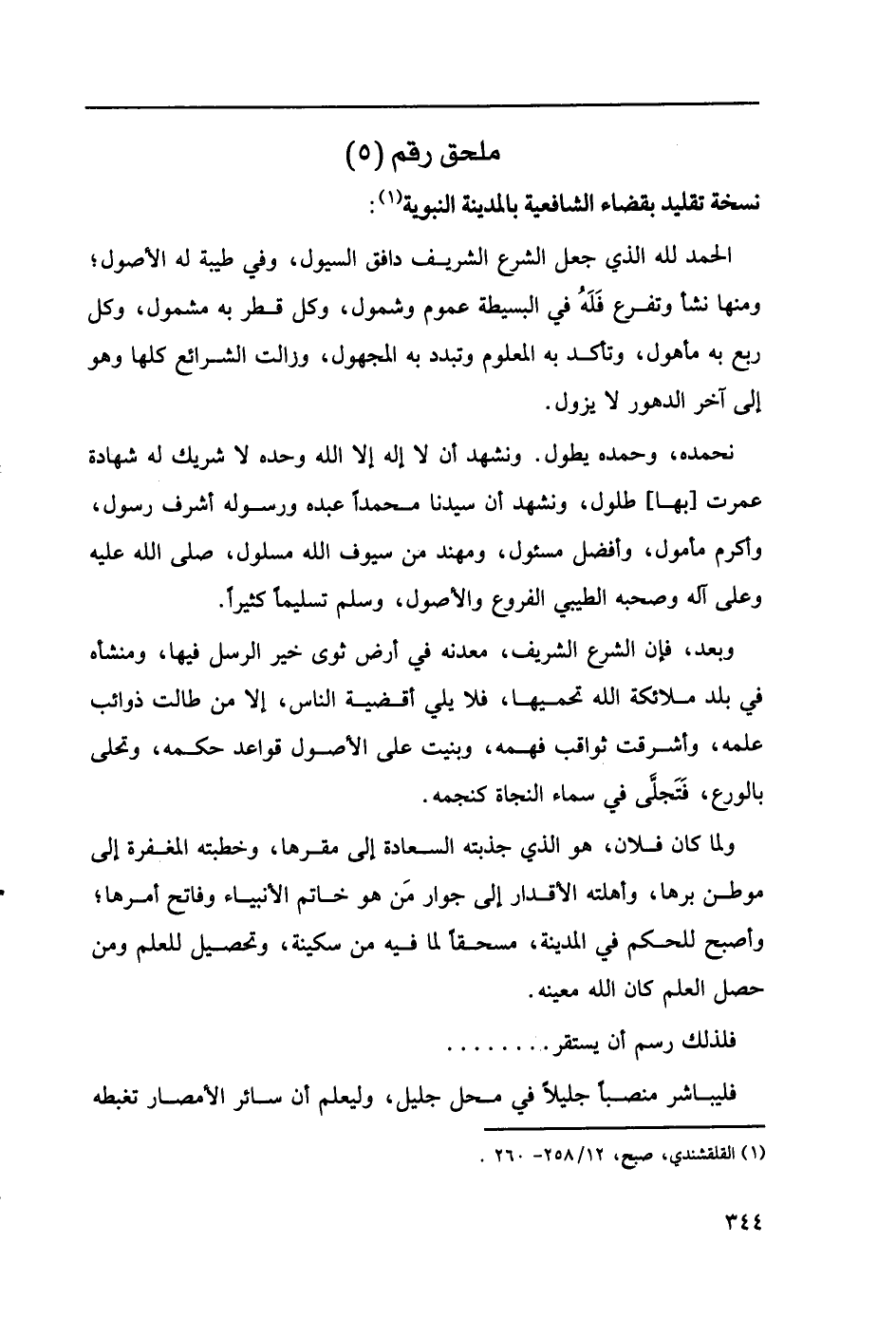 ملحق رقم (5) نسخة تقليد بقضاء الشافعية بالمدينة النبوية (1):