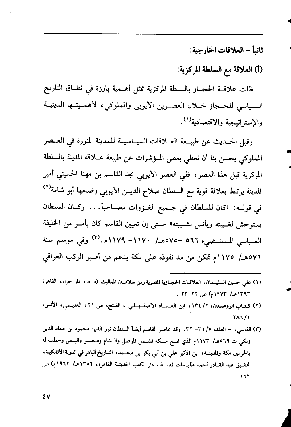 (1) علي حسين السليمان، العلاقات الحجازية المصرية زمن سلاطين المماليك (د. ط، دار حراء، القاهرة 1393هـ/ 1973م) ص22 - 23.