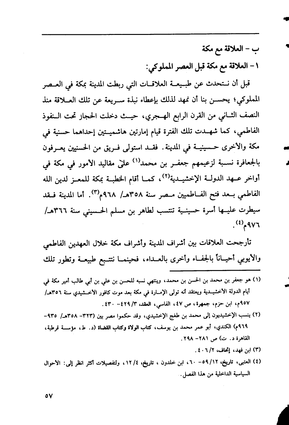 (1) هو جعفر بن محمد بن الحسن بن محمد، وينتهي نسبة للحسن بن علي بن أبي طالب أمير مكة في أيام الدولة الأخشيدية ويعتقد أنه تولى الإمارة في مكة بعد موت كافور الأخشيدي سنة 356هـ/957م، ابن حزم، جمهرة، ص 47، الفاسي، العقد، 429/ 3 - 430.