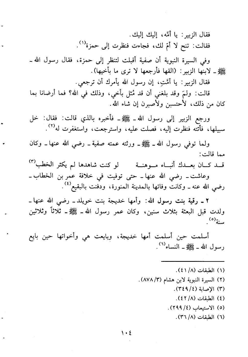 وفي السيرة النبوية أن صفية اقبلت لتنظر إلى حمزة، فقال رسول الله-
