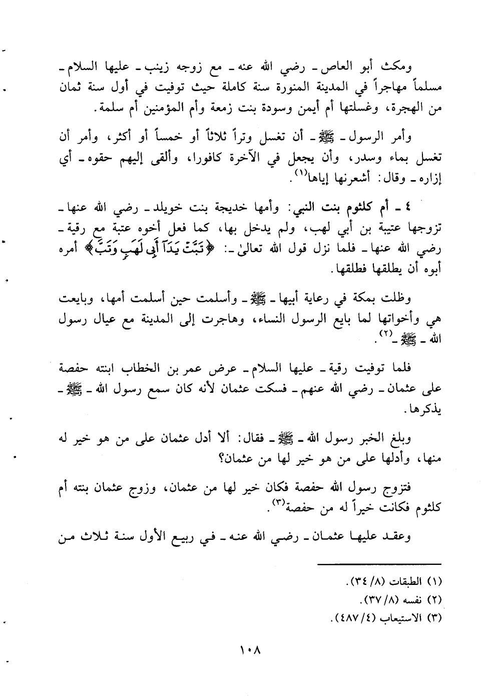 وعقد عليها عثمان - رضي الله عنه - في ربيع الأول سنة ثلاث من