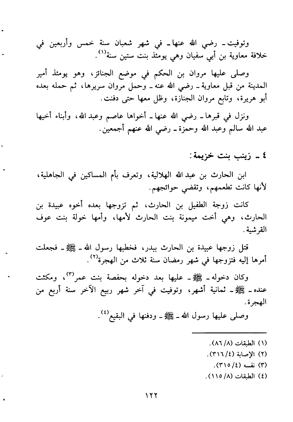 وتوفيت - رضي الله عنها- في شهر شعبان سنة خمس واربعين في