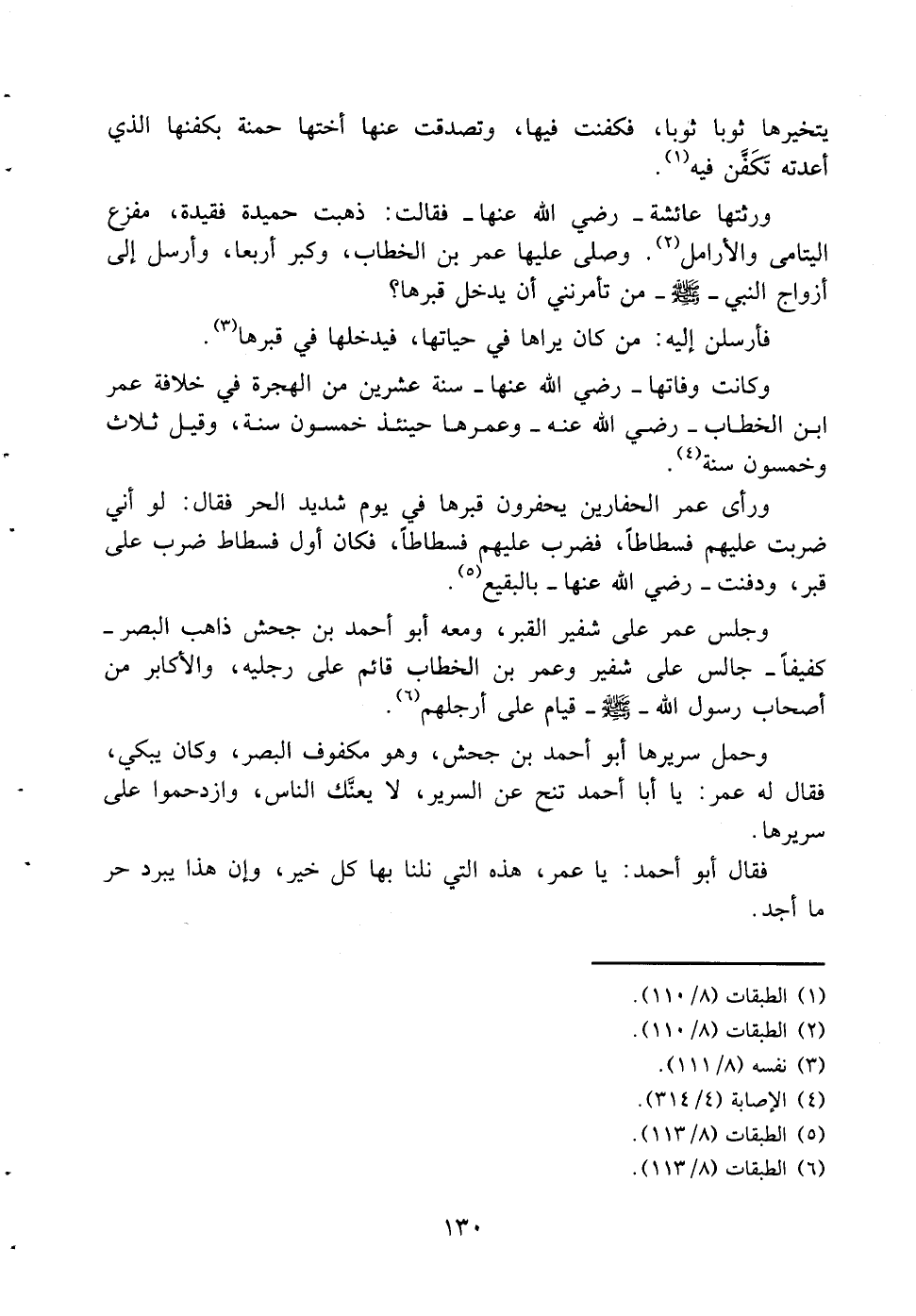 ابن الخطاب - رضي الله عنه - وعمرها حيمئذ خمسون سنة، وقيل ثلاث