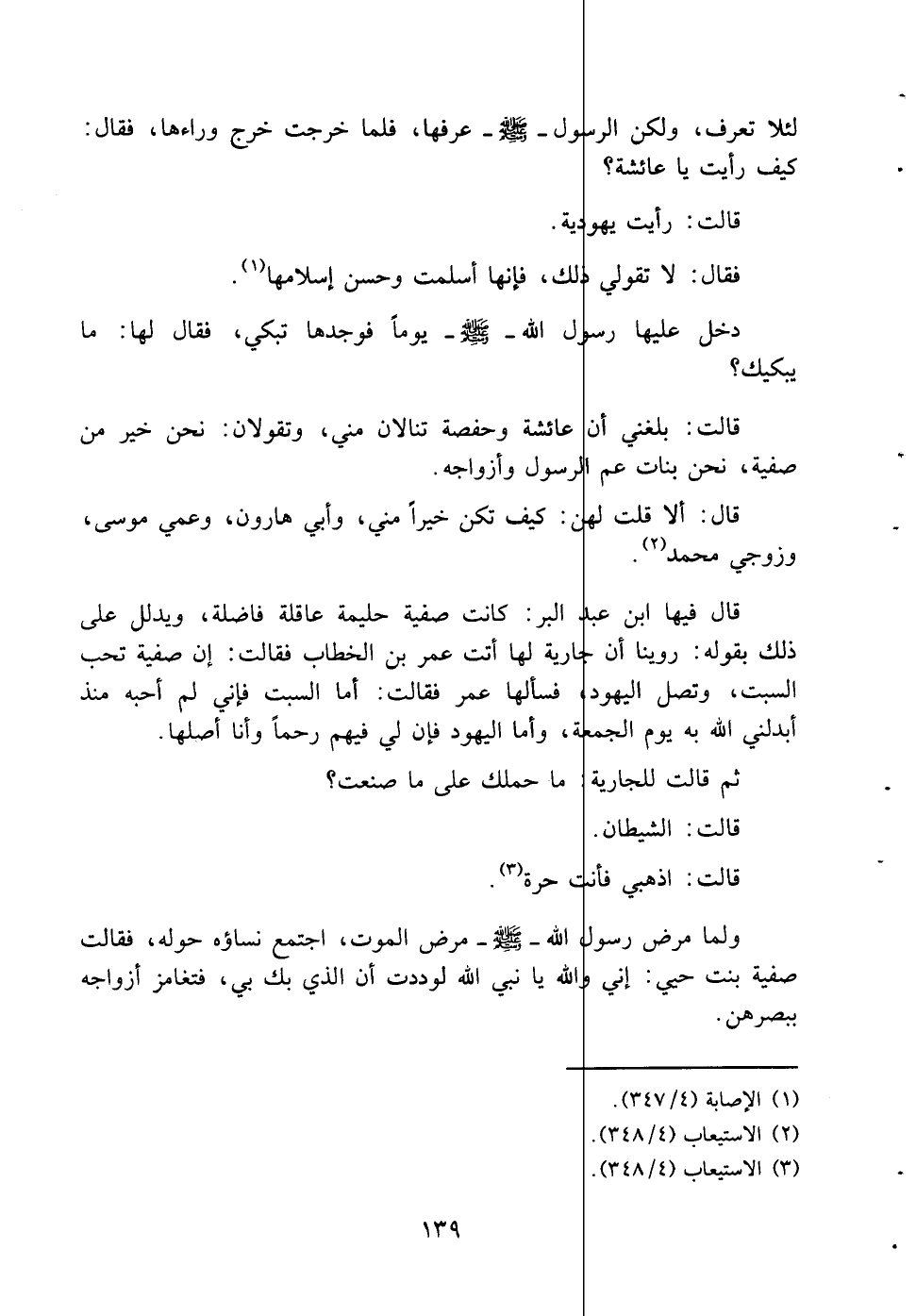 قال فيها ابن عبد البر: كانت صفية حليمة عاقلة فاضلة، ويدلل على