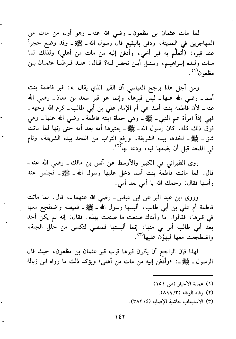 الرسول - صلى الله عليه وسلم -: "وادفن إليه من مات من أهلي " ويؤكد ذلك ما رواه ابن زبالة