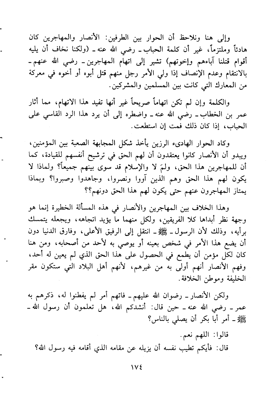 وإلى هنا ونلاحظ ان الحوار بين الطرفين: الأنصار والمهاجرين كان