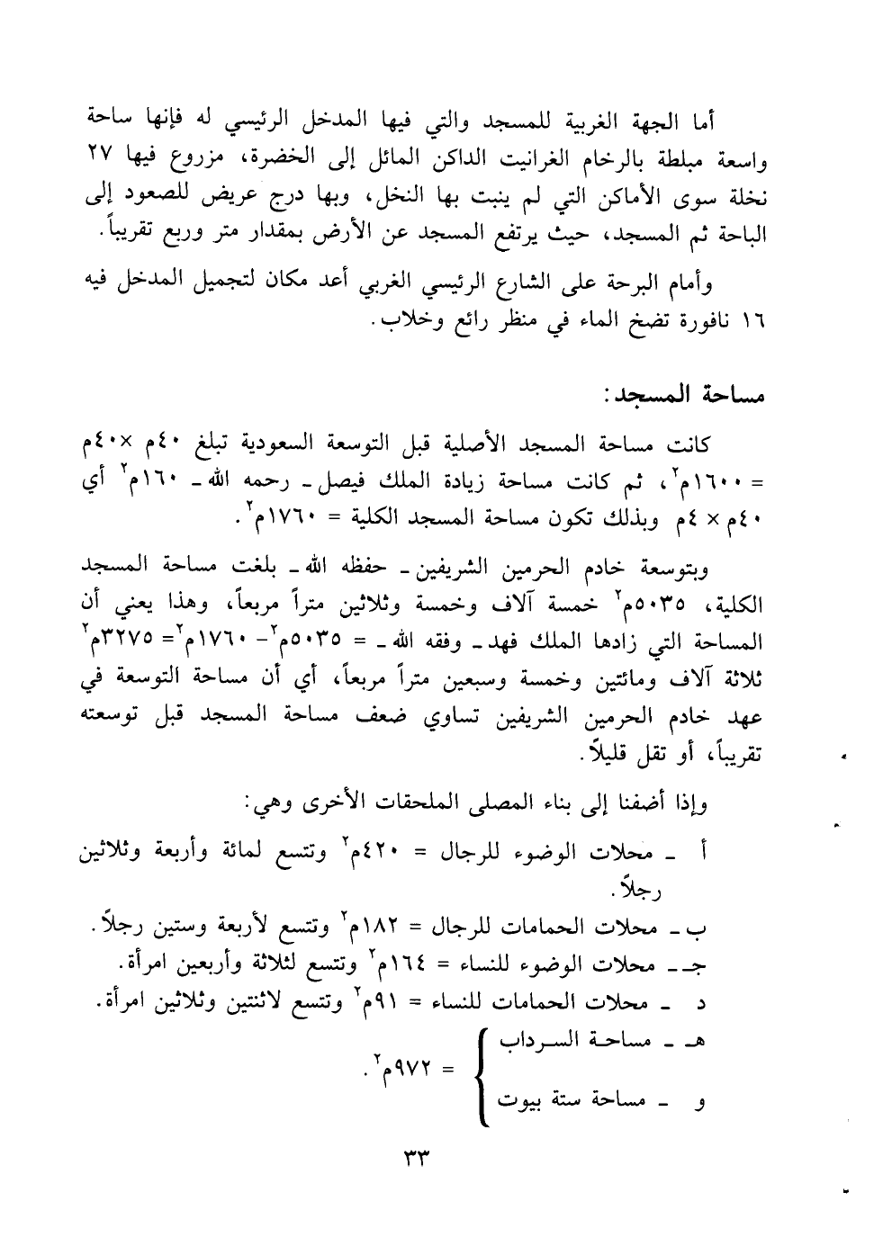 المساحة التي زادها الملك فهد- وفقه الله - = 5035 م 2 - 1760 م 2 - 3275 م 2