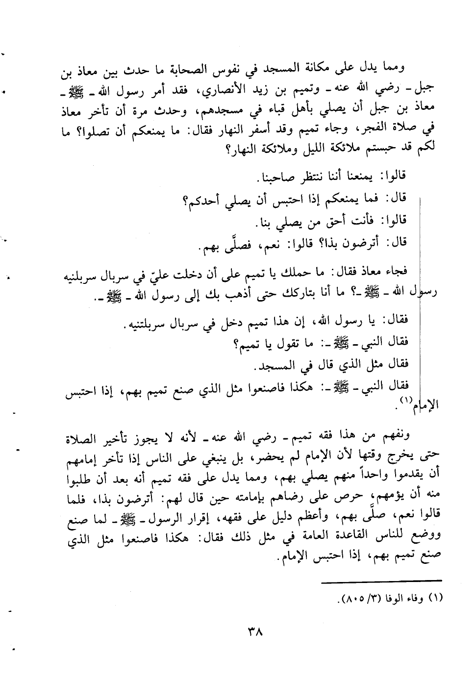 معاذ بن جبل أن يصلي باهل قباء في مسجدهم، وحدث مرة أن تاخر معاذ