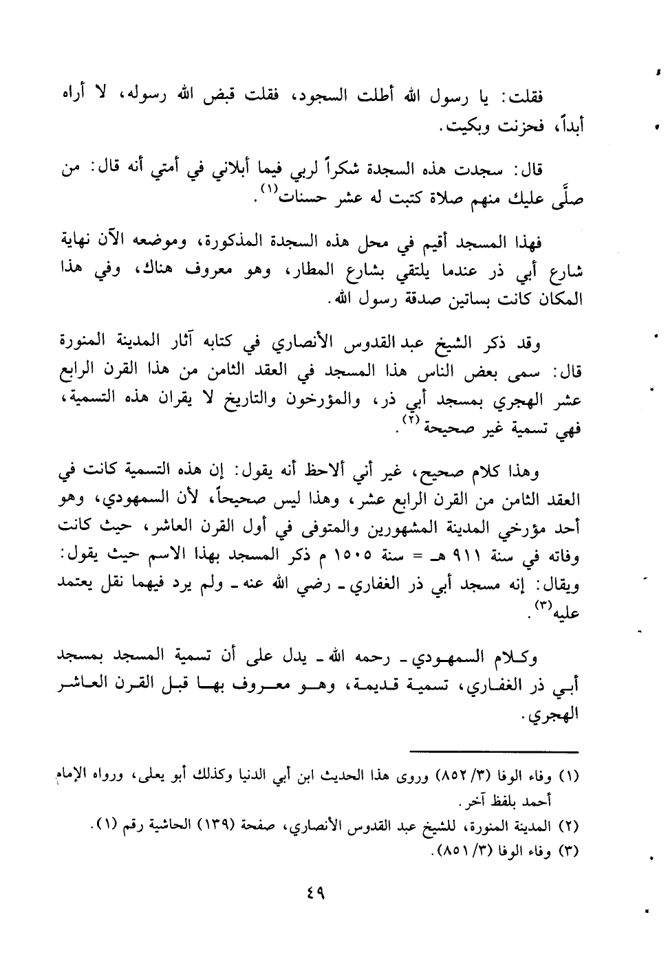 (2) المدينة المنورة، للشيخ عبد القدوس الأنصاري، صفحة (139) الحاشية رقم (1).