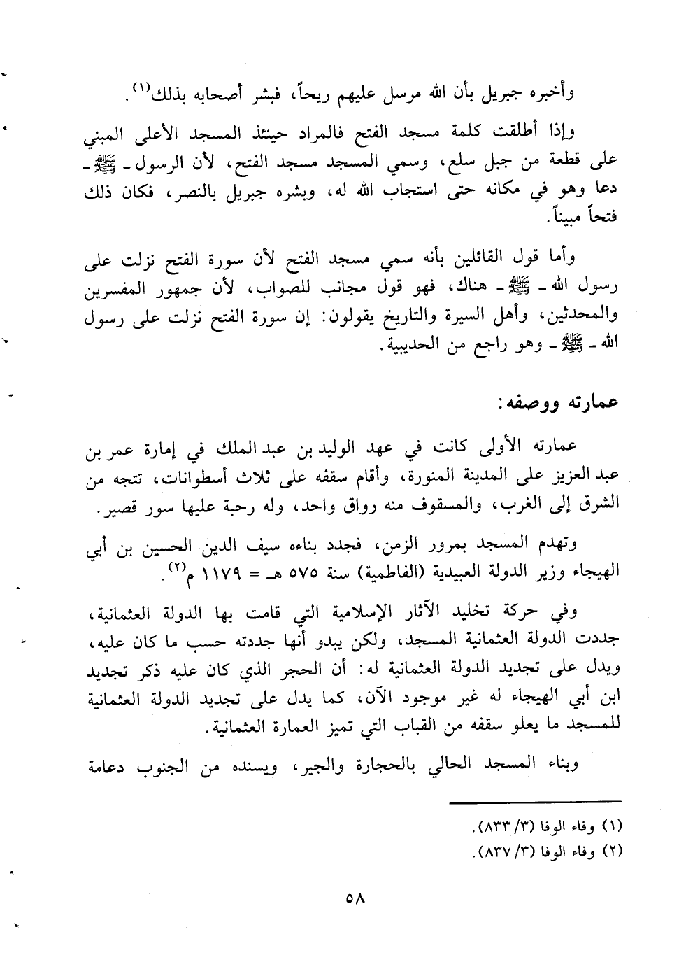 وإذا أطلقت كلمة مسجد الفتح فالمراد حينئذ المسجد الأعلى المبني