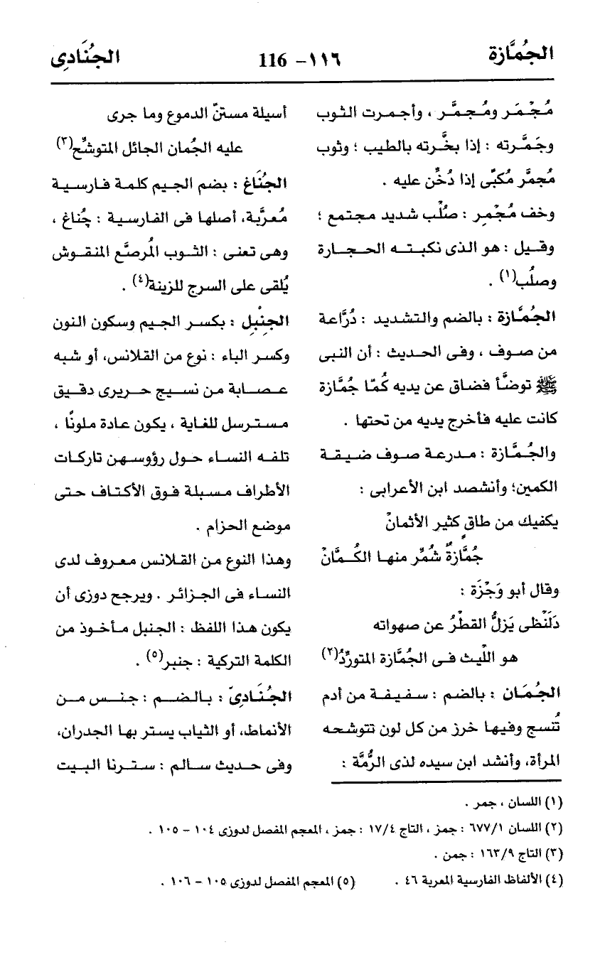 (¬5) المعجم المفصل لدوزى 105 - 106.