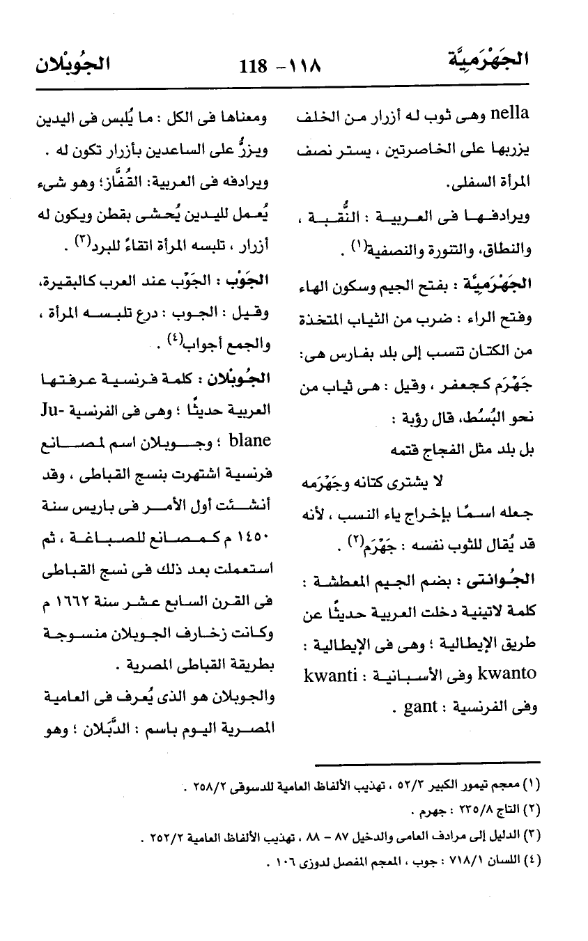 (¬4) اللسان 1/ 718: جوب، المعجم المفصل لدوزى 106.