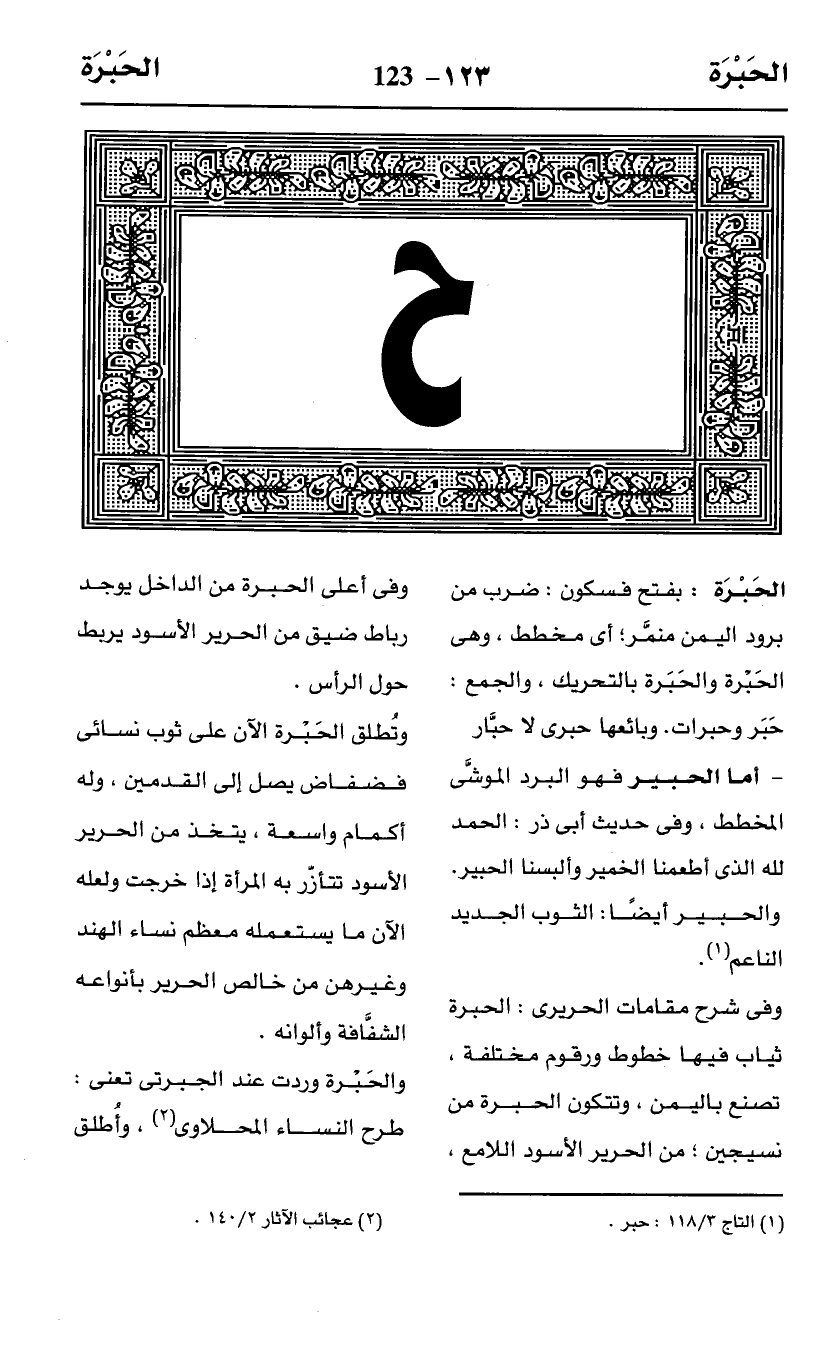 والحَبْرة وردت عند الجبرتى تعنى: طرح النساء المحلاوى (¬2)، وأُطلق