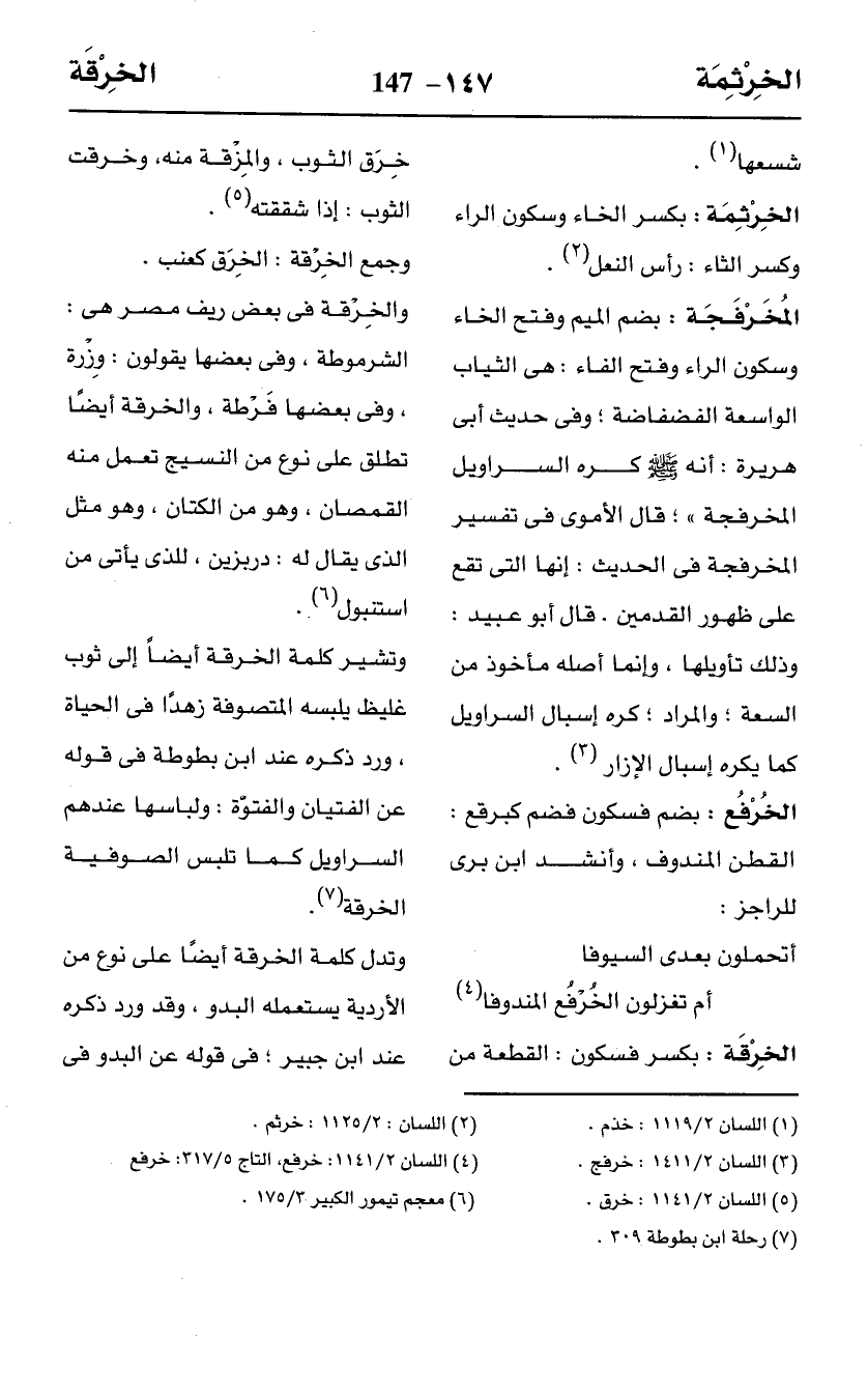 (¬4) اللسان 2/ 1141: خرفع، التاج 5/ 317: خرفع.