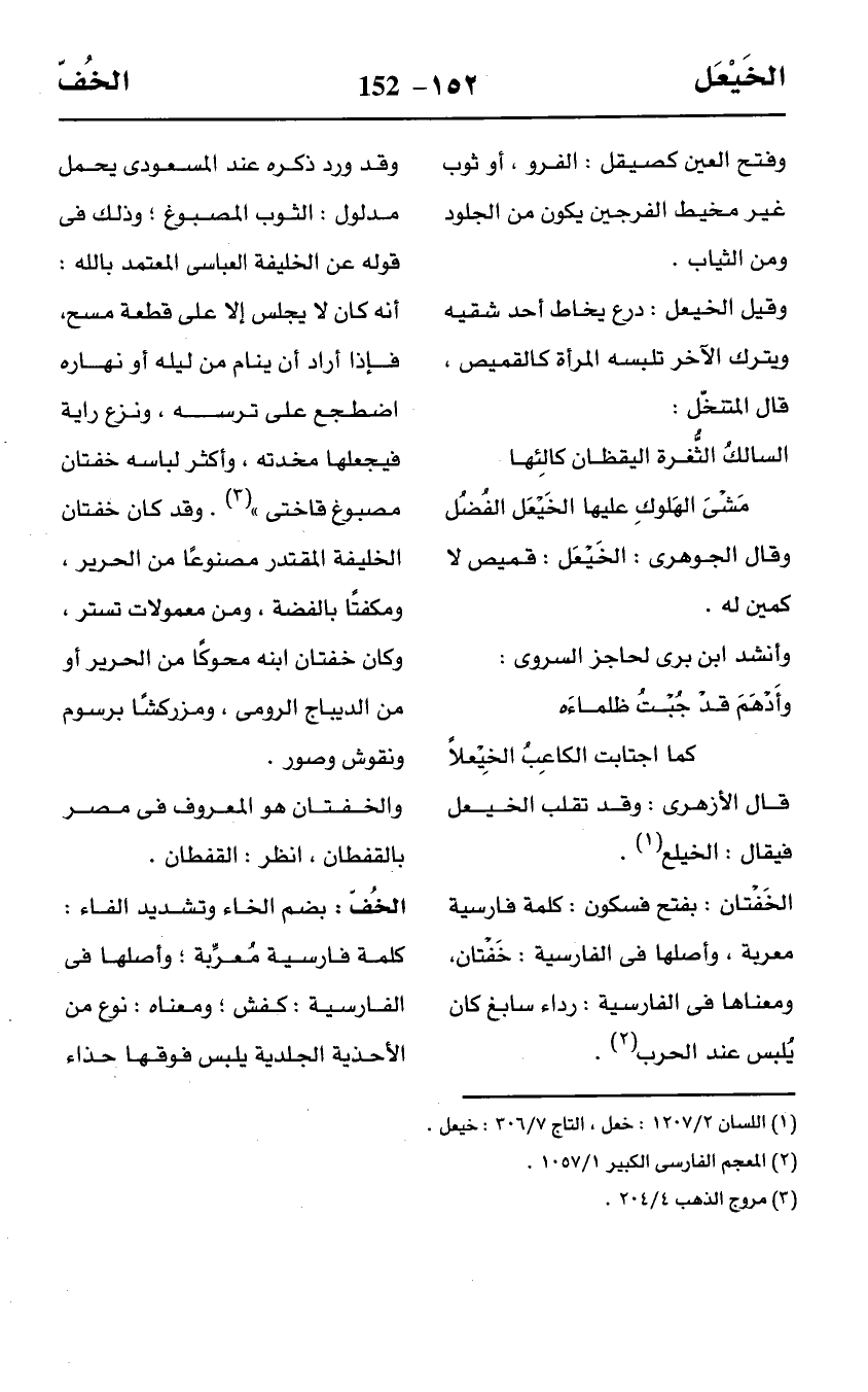الخَفْتان: بفتح فسكون: كلمة فارسية معربة، وأصلها في الفارسية: خَفْتان، ومعناها في الفارسية: رداء سابغ كان يُلبس عند الحرب (¬2).
