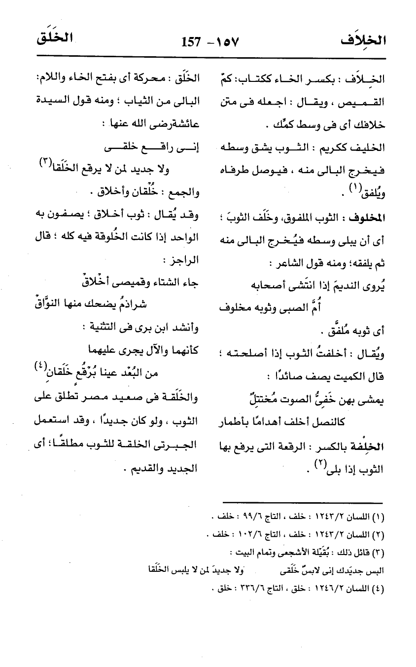 (¬4) اللسان 2/ 1246: خلق، التاج 6/ 336: خلق.