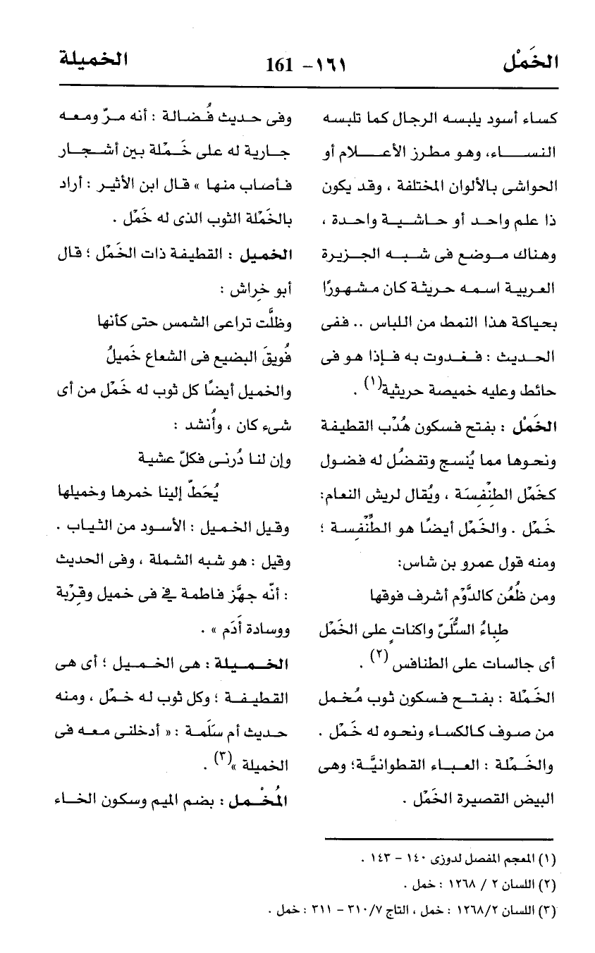 (¬3) اللسان 2/ 1268: خمل، التاج 7/ 310 - 311: خمل.