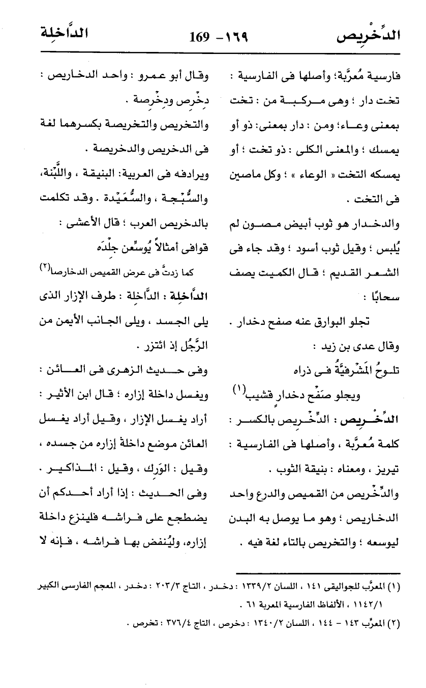 (¬2) المعرّب 143 - 144، اللسان 2/ 1340: دخرص، التاج 4/ 376: تخرص.