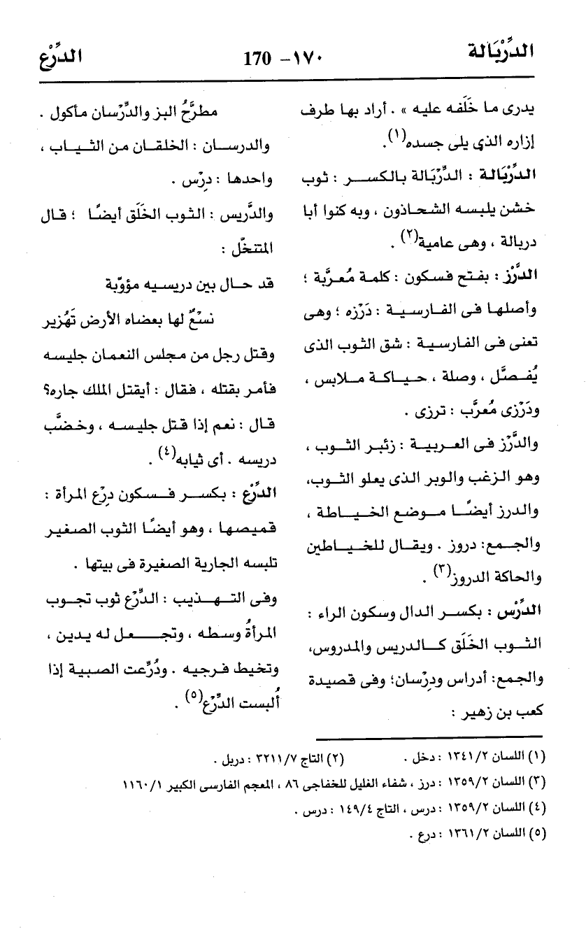 (¬3) اللسان 9/ 1352: درز، شفاء الغليل للخفاجى 86، المعجم الفارسى الكبير 1/ 1160.