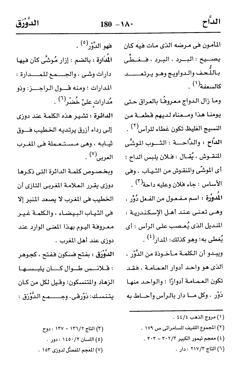 الدائرة: تشير هذه الكلمة عند دوزى إلى رداء أزرق يرتديه الخطيب فوق ثيابه، وهى مستعملة في المغرب العربى (¬7).