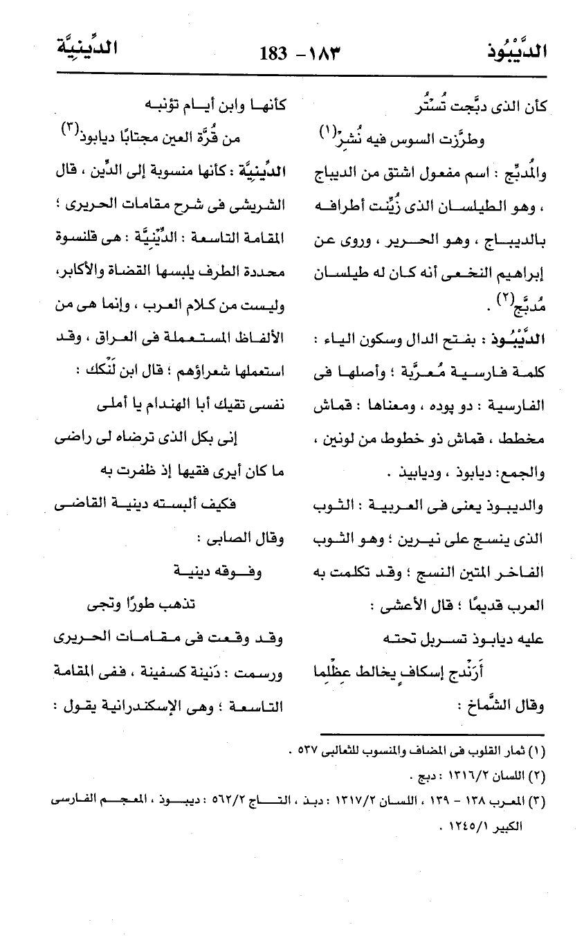 (¬3) المعرب 138 - 139، اللسان 7/ 1313: دبذ، التاج 2/ 562: ديبوذ، المعجم الفارسى الكبير 1/ 1245.