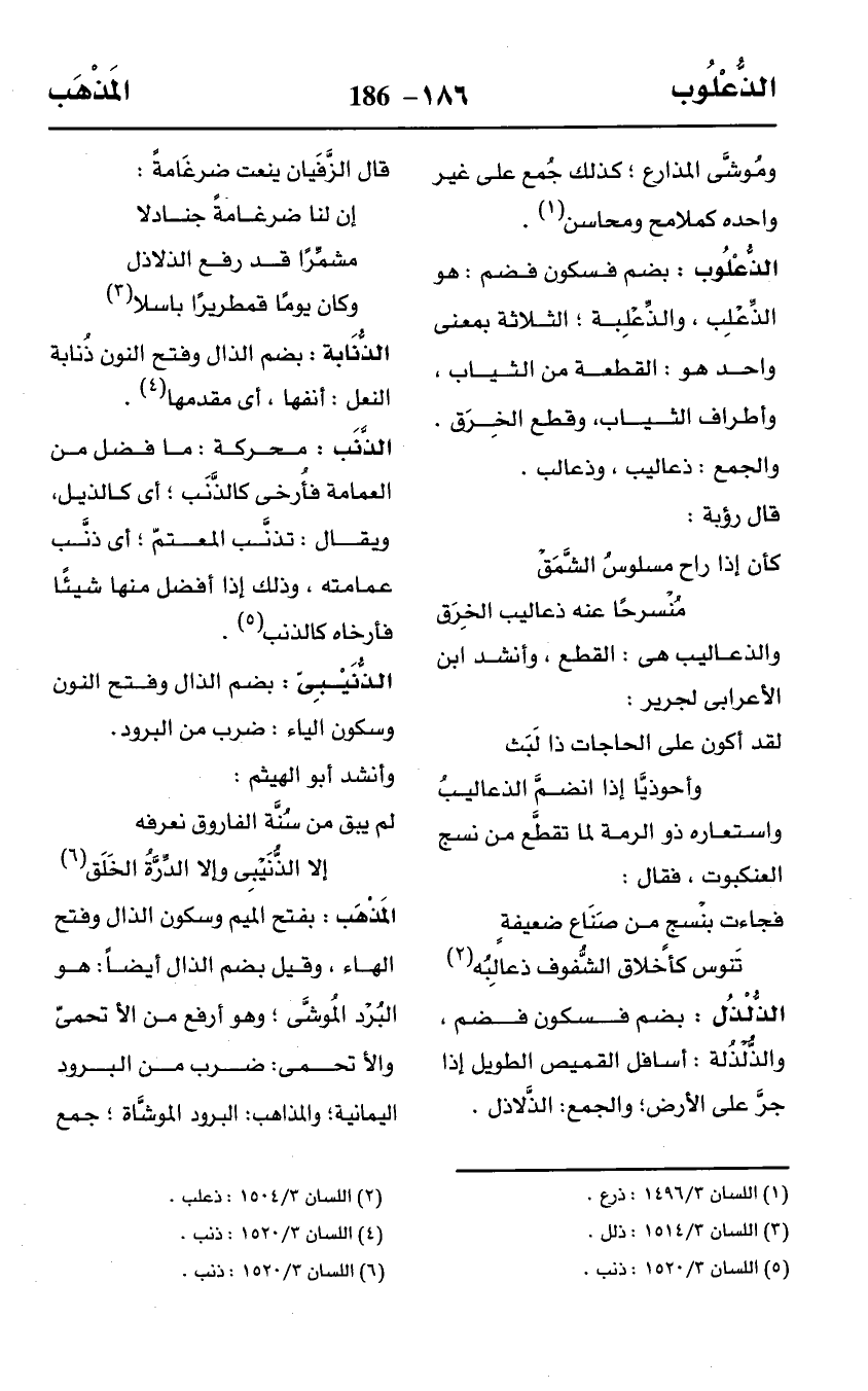 والذعاليب هى: القطع، وأنشد ابن الأعرابى لجرير: