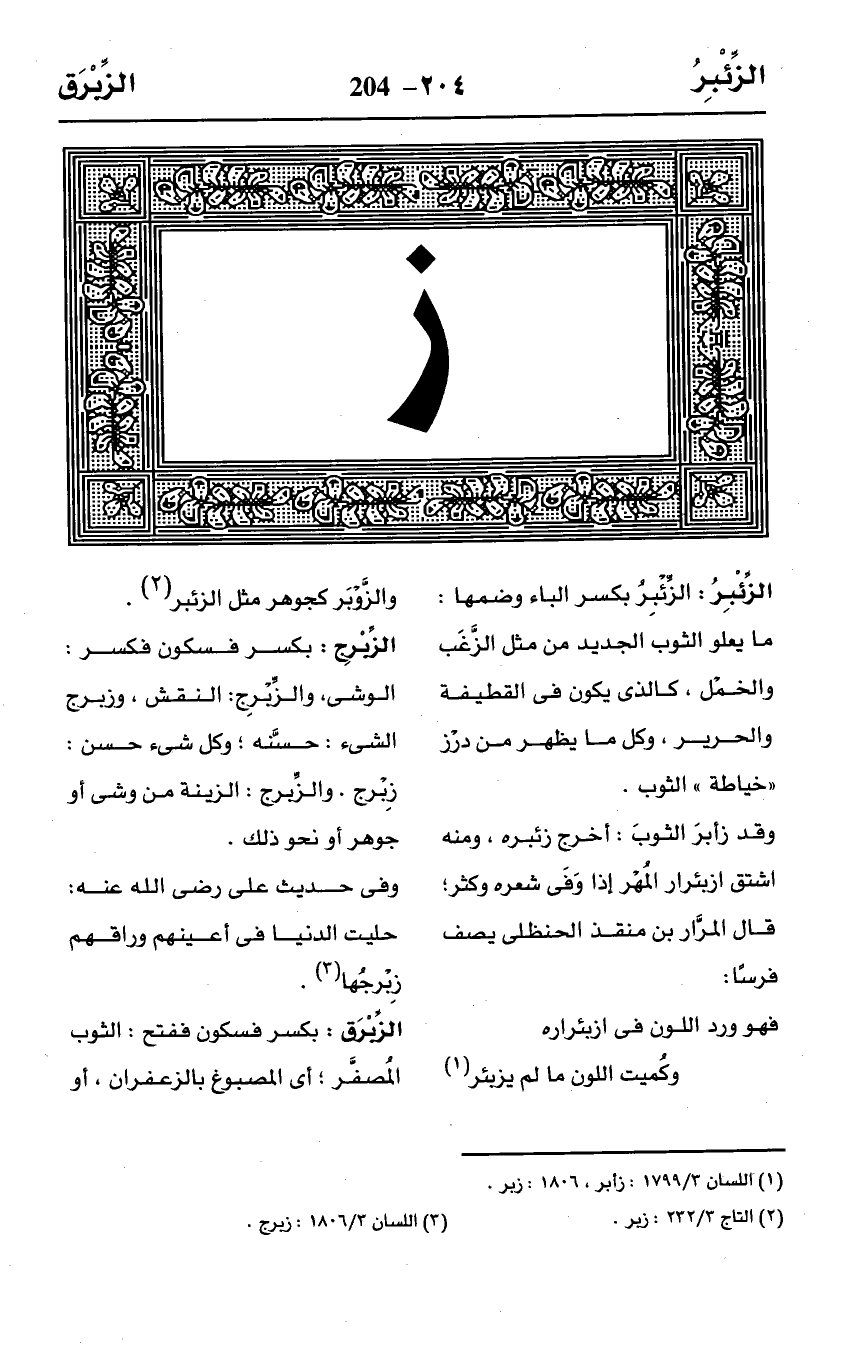 الزِّبْرِج: بكسر فسكون فكسر: الوشى، والزّبْرِج: النقش، وزبرج الشئ: حسَّنه؛ وكل شئ حسن: زِبْرج. والزِّبرج: الزينة من وشى أو جوهر أو نحو ذلك.