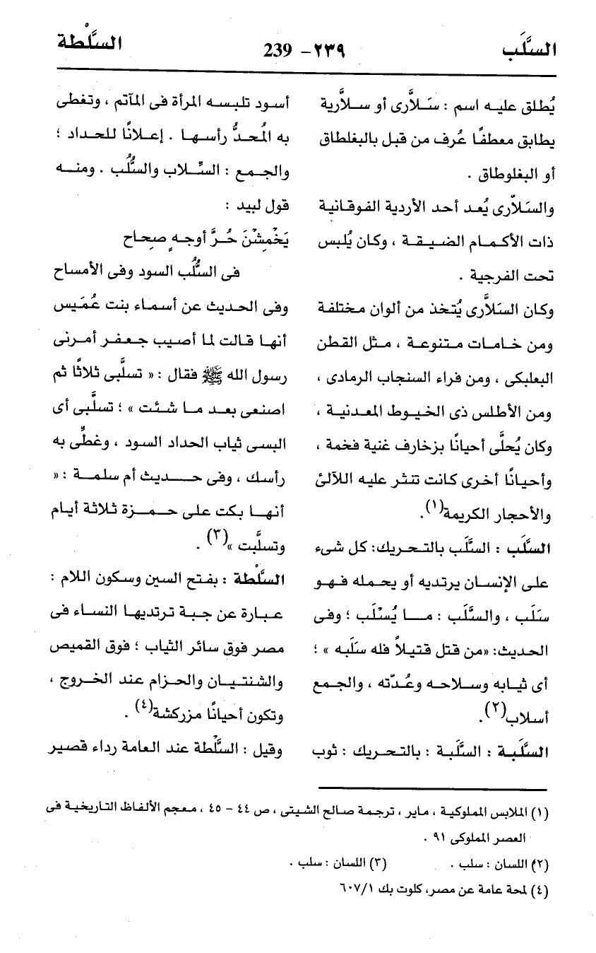 (¬1) الملابس المملوكية، ماير، ترجمة صالح الشيتى، ص 44 - 45، معجم الألفاظ التاريخية في العصر المملوكى 91.